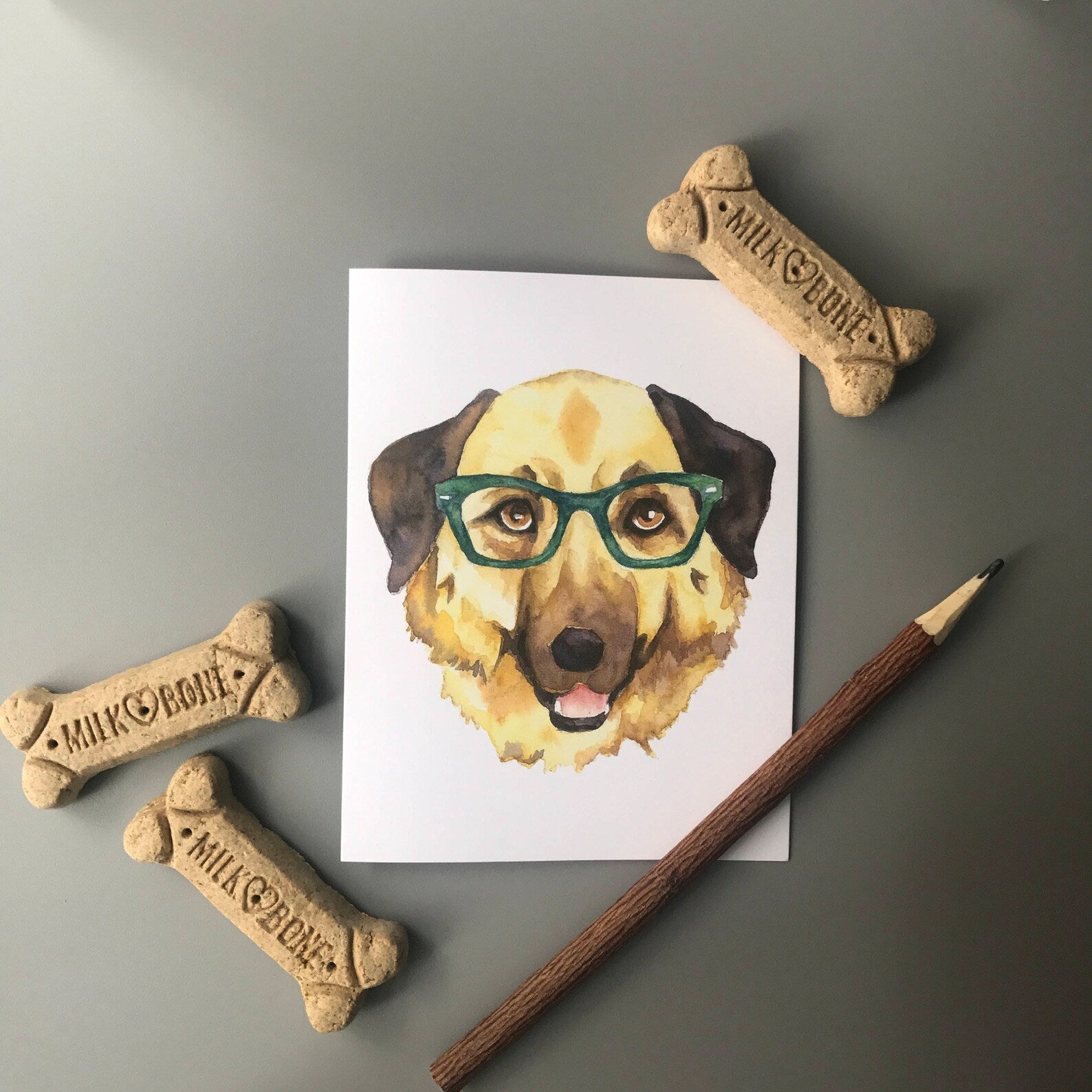 These adorable dog-in-glasses cards are cute and helpful, just like dogs! A 10% donation will be made to Pilot Dogs, Inc. (an organization that trains seeing-eye dogs) with each note card